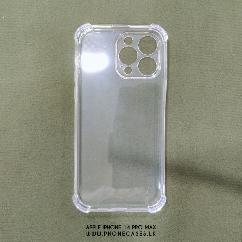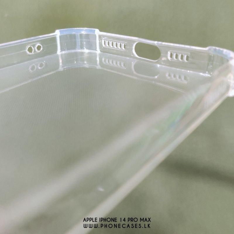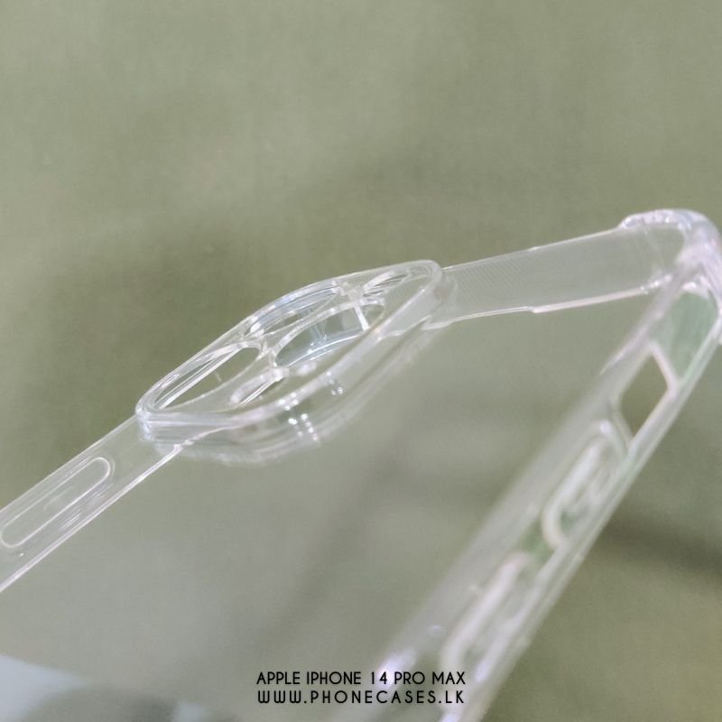 Protect your Apple iPhone 14 Pro Max with this clear transparent case from PhoneCases.lk. Featuring shock-absorbing corner bumps on all four corners for essential drop protection. This slim case maintains your phone’s sleek appearance while providing full access to all buttons, ports, and the advanced camera system.