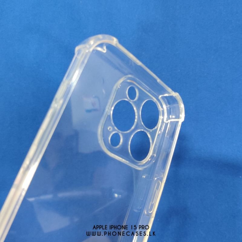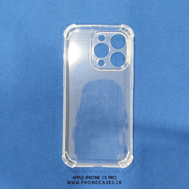 Protect your Apple iPhone 15 Pro with this Clear Transparent phone case from PhoneCases.lk, featuring shock-absorbing corner bumps on all four sides. Slim 1.5mm design with precise cutouts and responsive button fit—ideal for everyday protection while keeping your phone’s original look visible and stylish